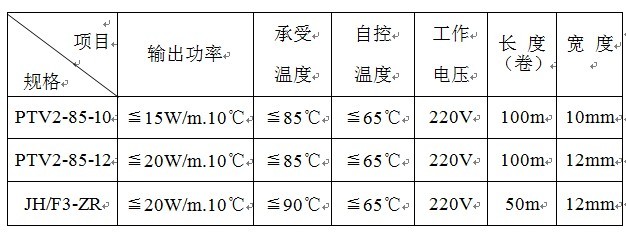自限温电热带的电热元件,是在两根平行金属母线之间均匀地挤包一层PTC材料制成的芯带,电缆一端的两根母线与电源接通时,电流从一根母线横向流过PTC材料层到达另一根母线,PTC层就是连续并联在母线之间的电阻发热体,将电能转化成热能,对操作系统进行伴热保温。芯带电阻随温度升高增大,到了高阻区,电阻大到几乎阻断电流,芯带温度便达到高限不再升高自动限温。电缆的输出功率主要受控于传热过程以被加热体系的温度。自限温电热带具有温度均匀,不会过热,安全可靠,节约电能,在选用电热带最长使用长度内任意剪短使用,可重叠,交叉使用。间歇操作时,升温起动快速,安装及运行费用低,安装维护简便,便于自动化管理,无环境污染